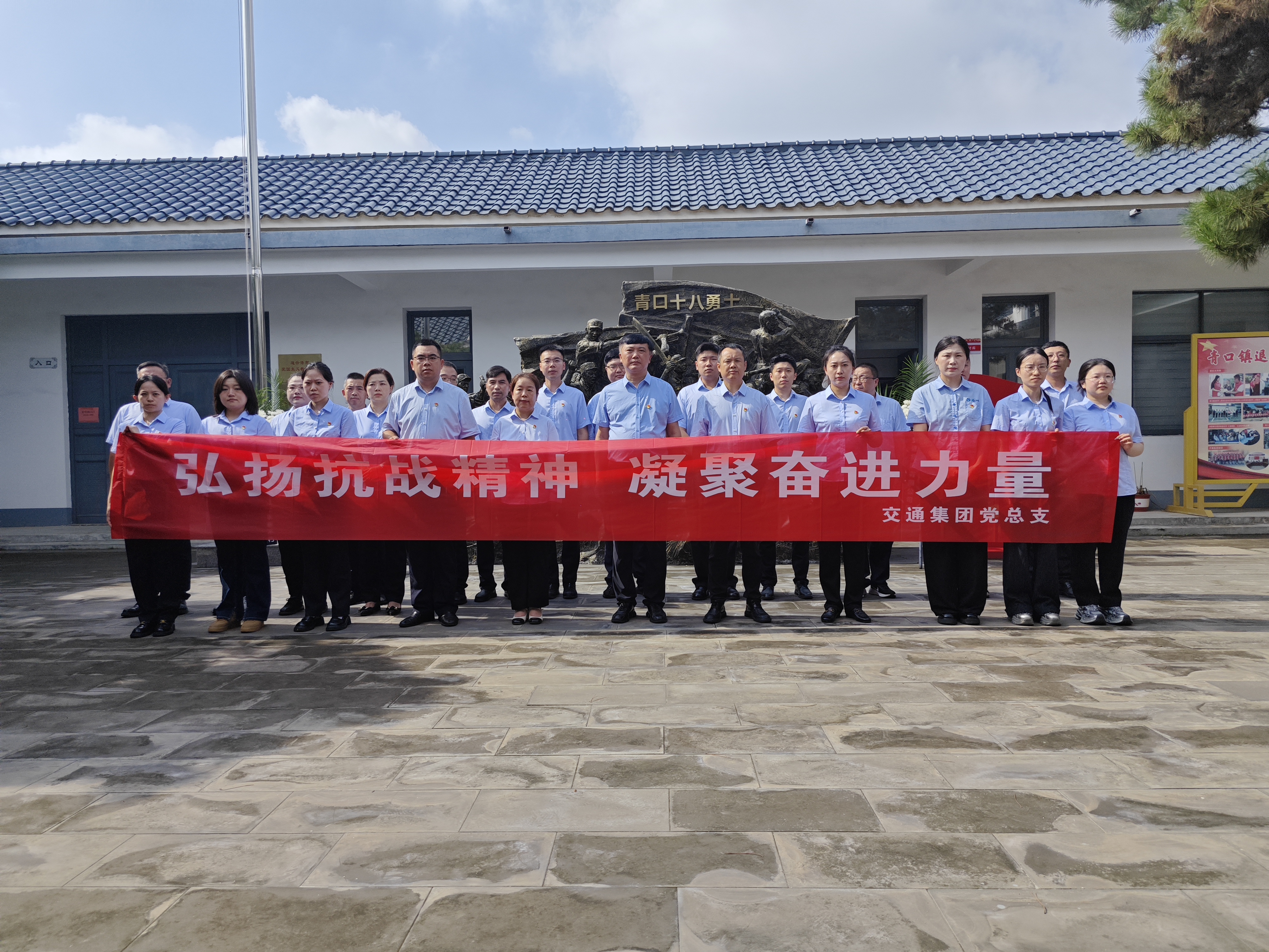 在纪念中国人民抗日战争暨世界反法西斯战争胜利80周年之际,8月15日,交通集团党总支组织党员干部前往赣榆青口镇十八勇士纪念馆,开展“弘扬抗战精神,凝聚奋进力量”主题活动,深切缅怀革命先烈,汲取红色基因中的奋进力量。